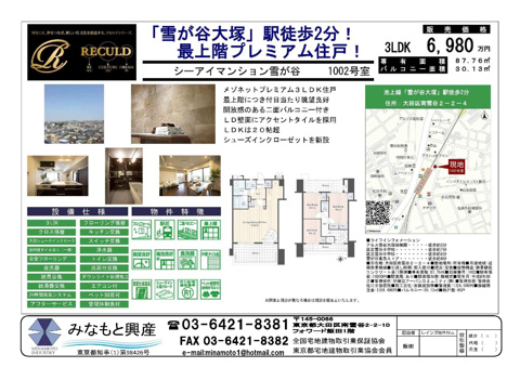 シーアイマンション雪が谷のご紹介です。11階建ての物件ならいつでも快適です。建物面積87.76㎡で、広々しております。陽当たりが良好な物件は湿気も少ないのでお勧めです。これからペットを飼いたい方は飼育のご相談を事前にお願いします。リノベーション済みの室内をゆっくりと内覧していただけます。豊富な物件情報を取り扱う当社が、心地良い素敵な物件をご紹介致します。資料請求等ありましたらお気軽にご連絡下さい。