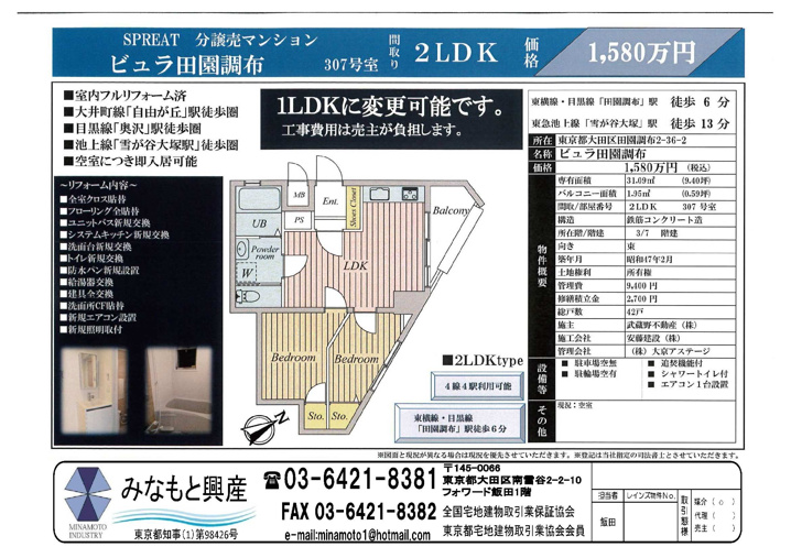 有限会社みなもと興産 > 有限会社 みなもと興産のブログ記事一覧 > ビュラ田園調布307号室価格変更のお知らせ